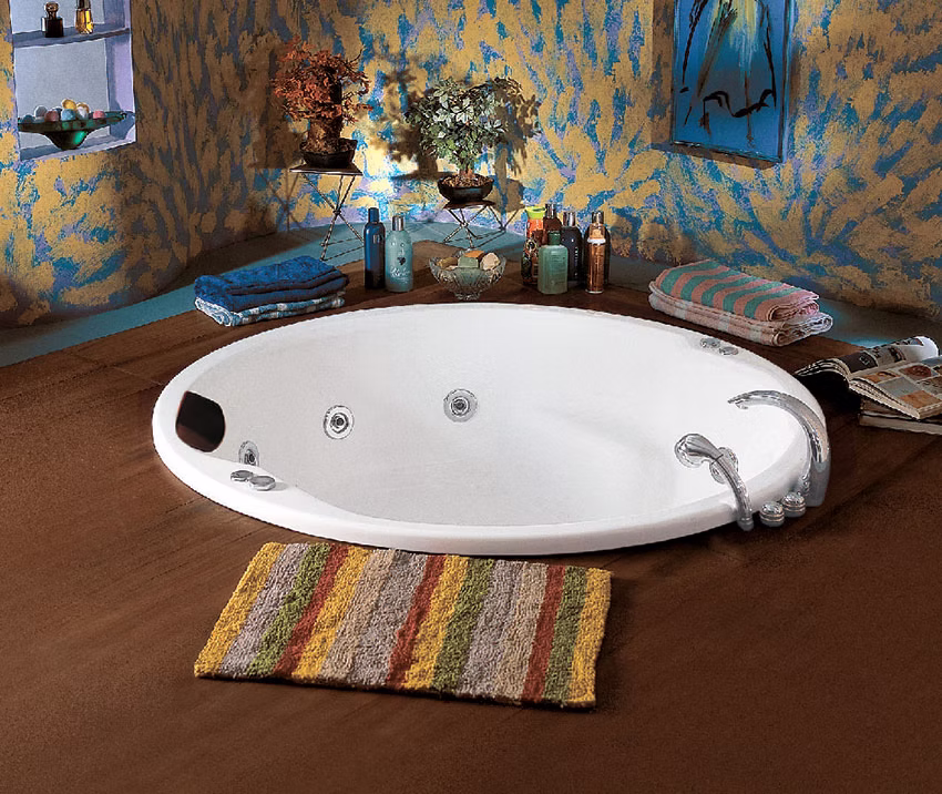 Another set of contemporary Round Freestanding Tub can be found in the Maestro Collection from Woven Gold India. To encourage the online buyer, they offer free shipping of their fine tubs. Check out the Michelangelo seamless acrylic. This tub is more of a soaker tub and will hold approximately 85 gallons when filled. While the first tub mentioned had the European German feel to it, this one is more of an Italian styling. It would take a large bathroom to hold it, but once you slid in, you'd never want to slide out.